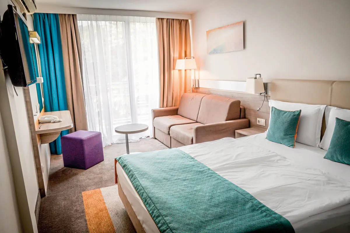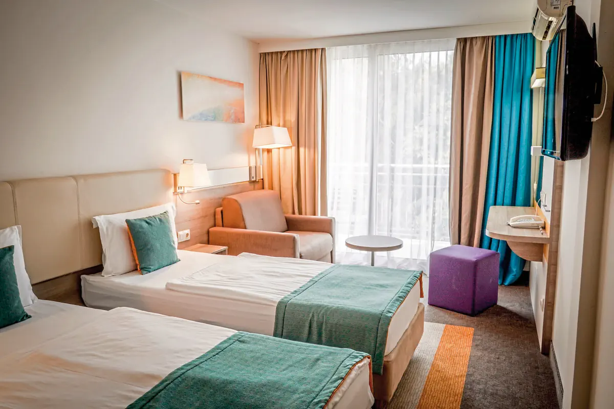 Rodzinny hotel położony w malowniczym parku w nadmorskiej miejscowości Albena. Idealne miejsce na wakacje dla rodzin z dziećmi, z dostępem do aquaparku Aquamania. Hotel oferuje 254 pokoje w trzech budynkach.