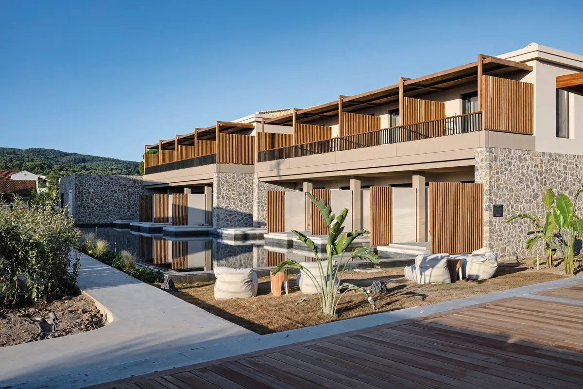 Nowo wybudowany, pięciogwiazdkowy hotel w malowniczej scenerii południa Korfu, idealny na romantyczny wyjazd i relaksujące wakacje. Gość wypoczywa przy zewnętrznych basenach z tarasem słonecznym, spędza leniwe chwile na prywatnej, piaszczysto-żwirowej plaży z barem, delektuje się lokalną kuchnią i korzysta z siłowni oraz sali fitness, a dla pełnego odprężenia wybiera płatne zabiegi w spa, w tym saunę, masaże, zabiegi kosmetyczne, manicure/pedicure i jacuzzi. Na miejscu dostępne jest Wi-Fi.