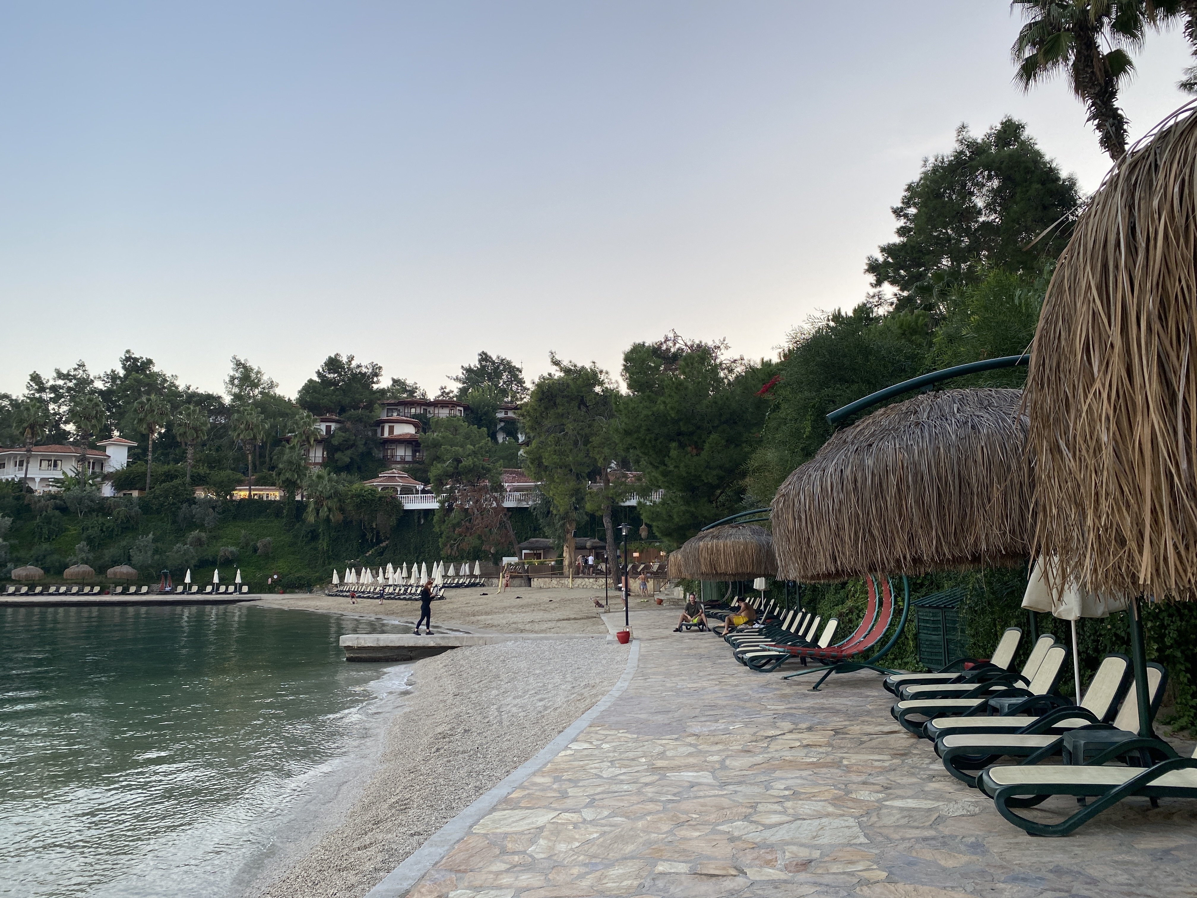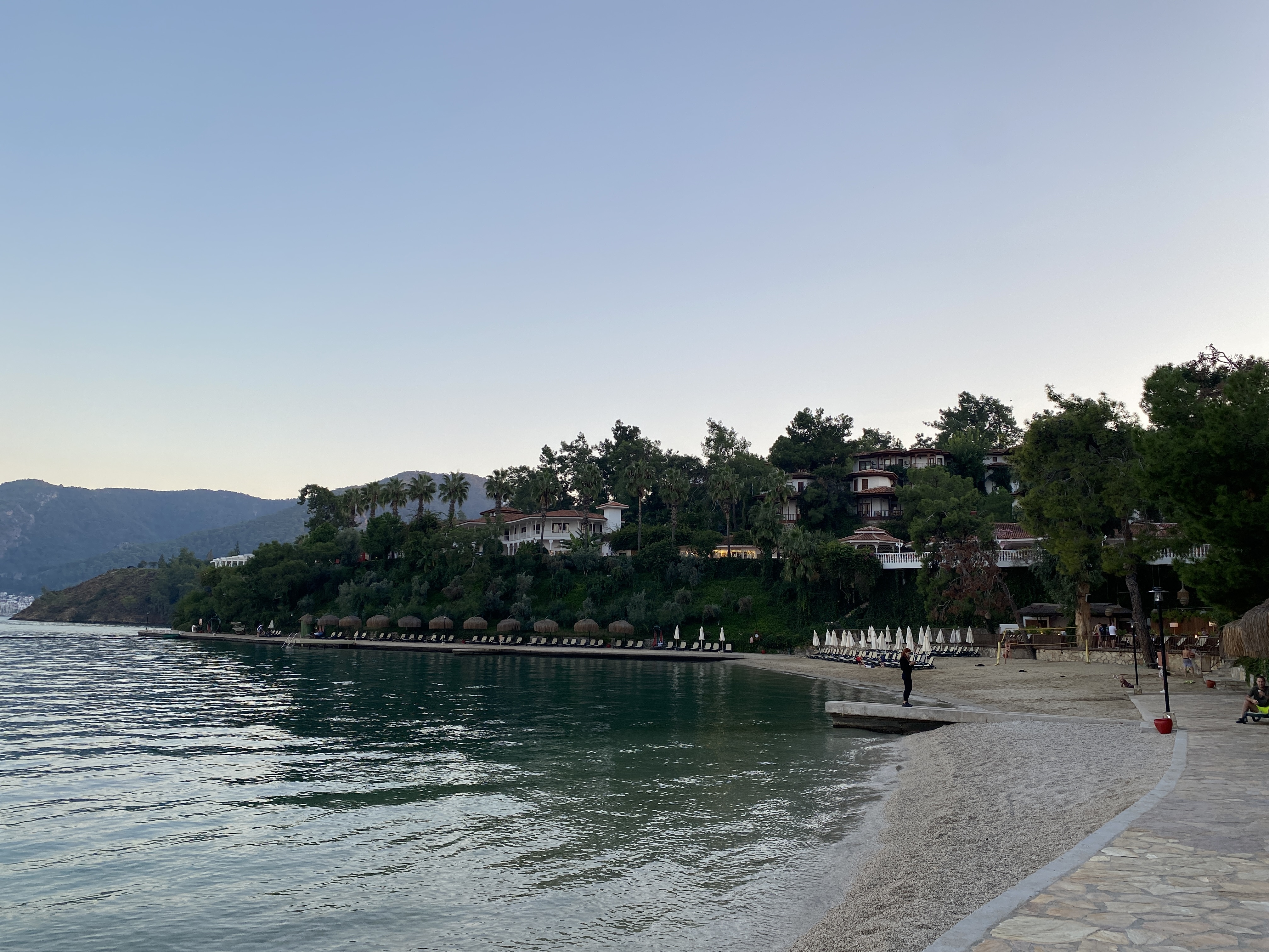 Teren hotelu imponujący, dużo zieleni, kilka plaż, restauracji i barów. Każdy dzień w tym hotelu może być inny. Widoki zapierają dech. Pokoje w bungalowach dość stare i brak balkonów irytuje zwłaszcza gdy rezerwuje się opcje z balkonem a na miejscu zastaje bungalow bez z informacją że niestety ale jest tylu gości i iż nie każdy się złapie -to tylko mała niedogodność bo całe dnie spędza się poza pokojem więc da się przeżyć. Jedzenie w restauracjach bardzo dobre jak na Turcję. Wybór wędlin i pieczeni nas zaskoczył. Owoców spory wybór, pozycje dla bezglutenowcow czy piwo bezalkoholowe na barach to duży plus. Karty drinków bardzo ciekawe. Drinki pycha. Nie zdążyliśmy spróbować każdego. Lody do wyboru do koloru od galkowych po pakowane -opcji ksztaltow i smaków z 15. Na basenach i plażach nie ma walki o leżaki. Każdy o każdej porze coś znajdzie. Obsługa hotelu jest przecudna. Nieba ci przychyla. Z hotelu pływa łódź do Fethiye -ueokliwe miasteczko z portem, restauracjami i sklepikami.