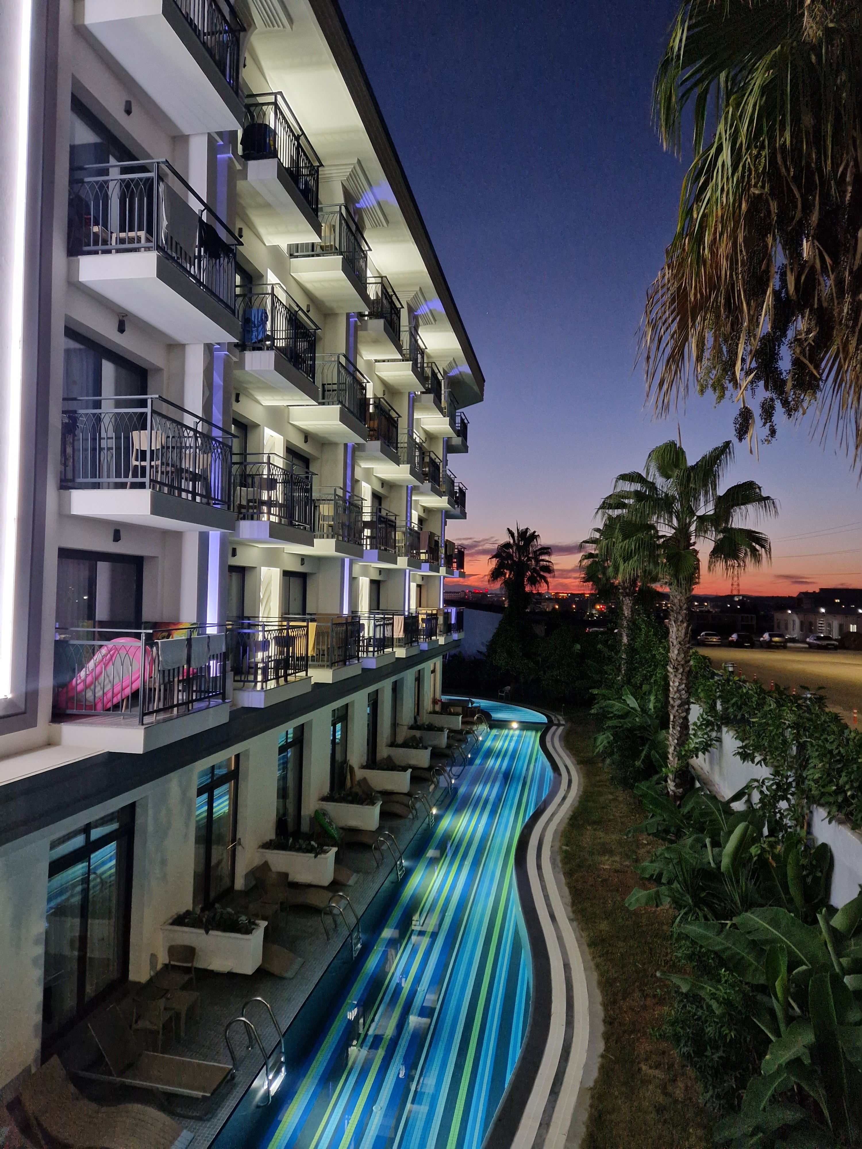 Hotel nowoczesny i czysty, pokoje codziennie sprzątane, 2 baseny, 3 zjeżdżalnie. Do plaży 10 min spacerem lub co 20 min jeździł hotelowy bus, trasa mu zajmowała 2-3 minuty. Zaraz obok hotelu była ulica z straganami ciągnącą się na jakiś kilometr. Obsluga bardzo miła, zagadująca do gości i uśmiechnięta. Jedzenie uważam że mogłoby być lepsze, były rzeczy które nam smakowały, ale też i sporo tych które były nie dobre. Nam najbardziej osobiście smakował kebab który na 7 dni pobytu byl 3 razy jako osobne stanowisko i Pan ciął maczetką ( tylko na kolację). Plaża czysta, leżaki i parasole w cenie, nie bylo żadnych problemow z miejscem, bar na plaży tylko z piwem które bylo rozwodnione oraz jakieś sałatki, burgery ( które smakowaly jak gotowce z marketu), na obiad na plaży były parę razy kurczaki z rożna, na terenie hotelu na zewnątrz był grill na którym też robili burgery tam były bardzo dobre oraz pizza z pieca była też tam robiona. Drinki w hotelu słabe, bardzo słodkie i praktycznie bezalkoholowe. W hotelu było około 70-80% Niemców, także animator w większości przez głośniki mówił po Niemiecku, były tematyczne wieczory codziennie takie jak zespół akrobatyczny, zespół który śpiewał itd, był wieczór bingo, ale oczywiście wszystko się odgrywalo w języku niemieckim. Mało Polaków w hotelu. Ogólnie pobyt oceniam na plus mimo że mogło być lepiej najbardziej pod względem jedzenia oraz drinków, ale wiem że też mogło się trafić dużo gorzej. Nie żałuję tego pobytu, ale nie wróciłbym drugi raz do tego hotelu :)