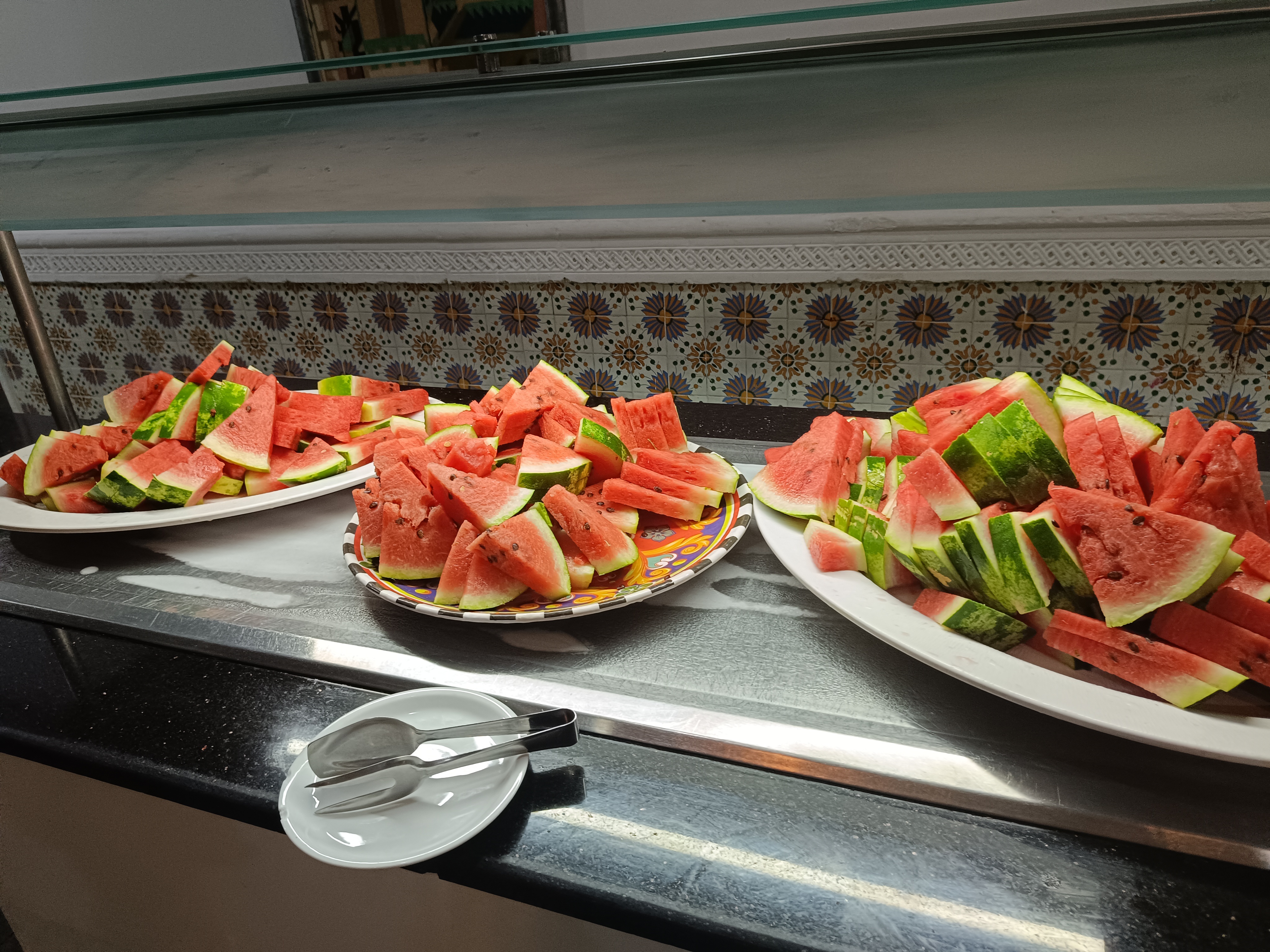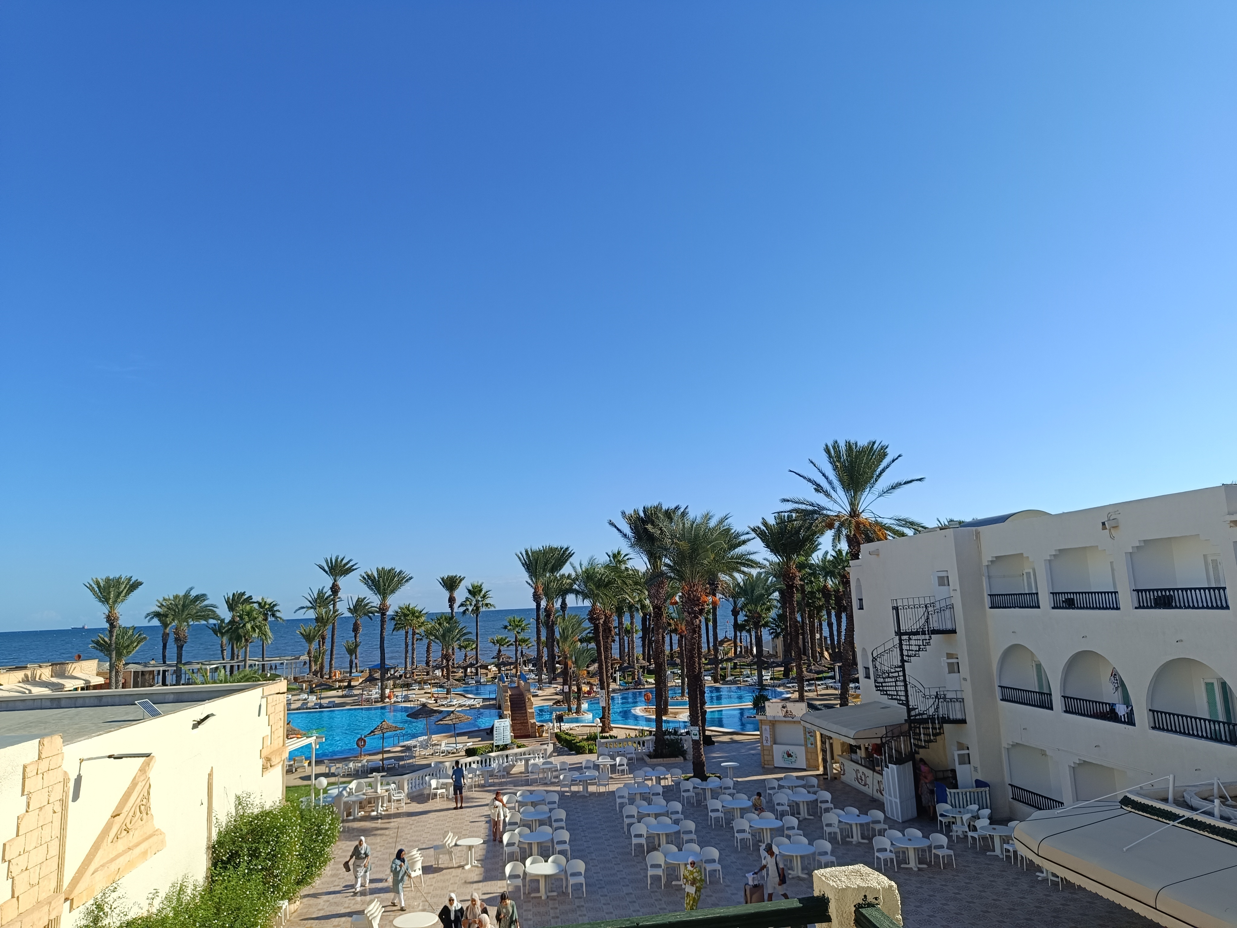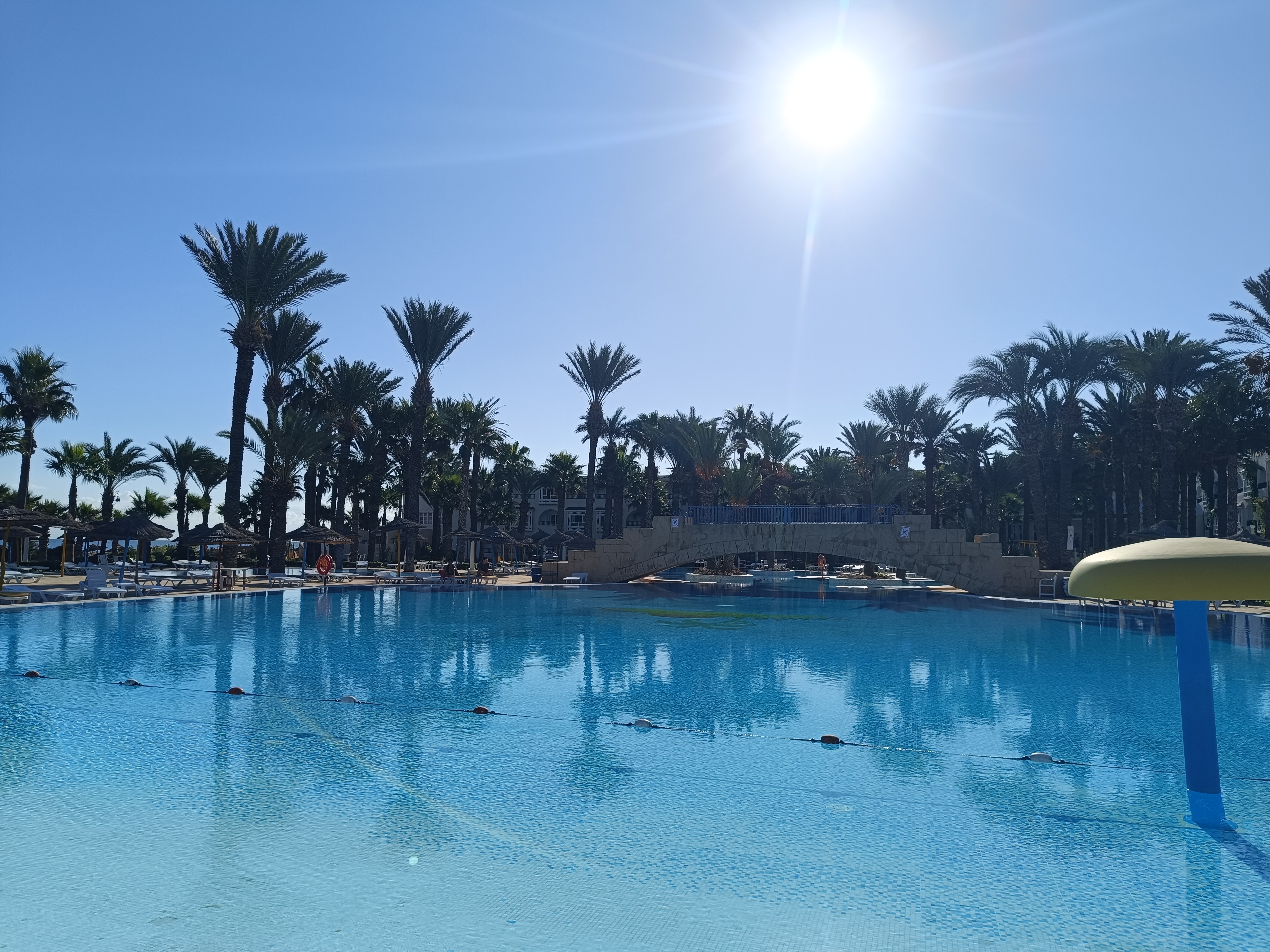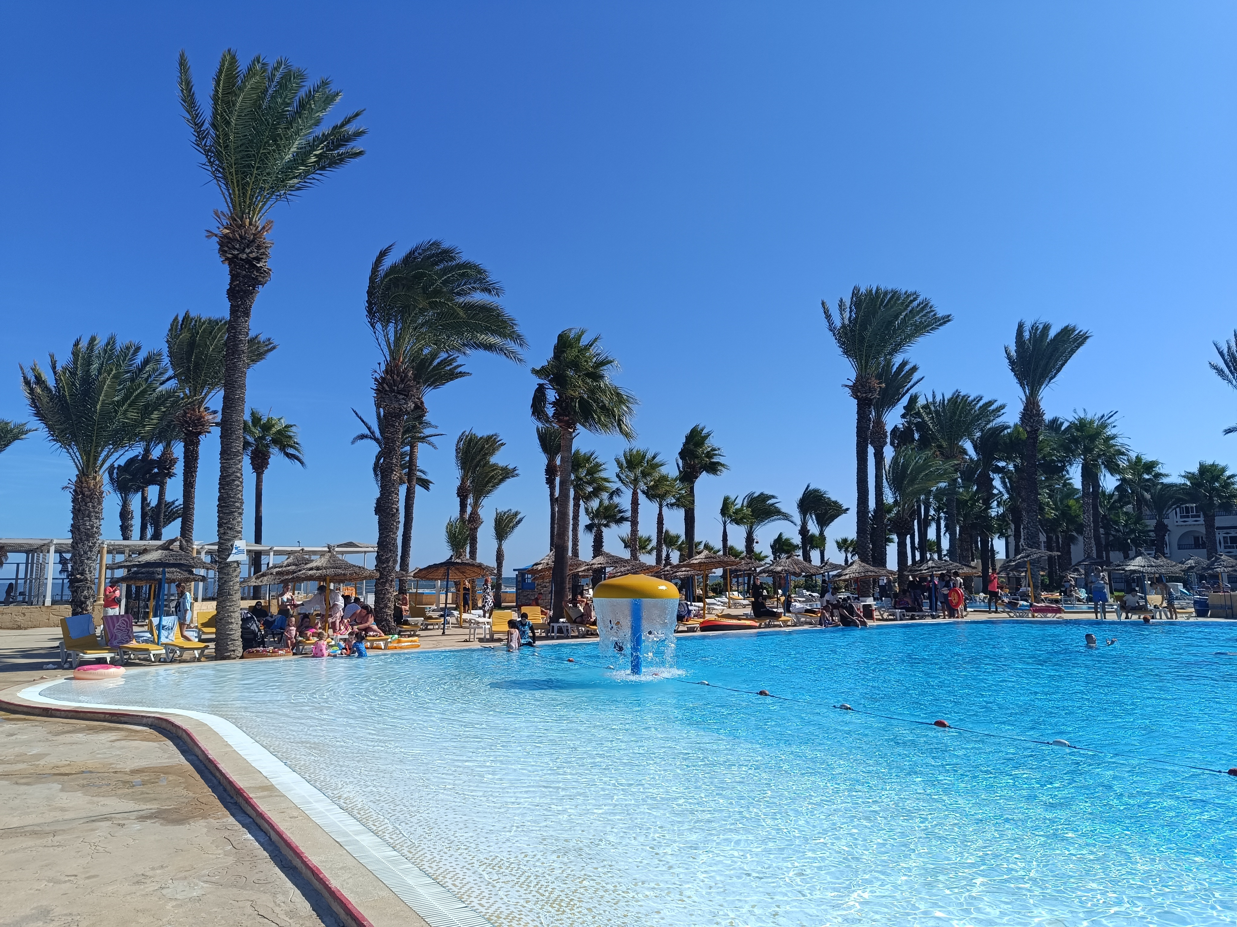 Ogólnie nie polecam. Mimo, że byliśmy z rodziną nie w szczycie sezonu, to na stołówce było mnóstwo Algierczyków, którzy nakładali sobie ogromne ilości jedzenia, nie spiesząc się wcale przy tym, co powodowało ogromne kolejki. Często celowo nakładali sobie takie porcję, aby dla Polaków nie wystarczyło. Na ich stolikach pozostawało to jedzenie często nieruszone, zostawiali natomiast ogromny brud po sobie. Ten hotel jako jeden z nielicznych przyjmuje Algierczyków, którzy mają ogromne promocje, więc korzystają chętnie- wybierzcie inny hotel, w tym jest ich przewaga, a to naprawdę nie sprzyja udanym wakacjom. Poza tym, w pobliżu hotelu nie ma nic, wszędzie trzeba jechać taksówką, nawet do sklepu. To jest koszt około 80zl w dwie strony. Ceny w supermarketach tańsze jak w Polsce, więc wybierzcie hotel bliżej sklepów, a nie na takim uboczu. Plaży nie ma, nie jest tak jak na zdjęciach, morze zabrało plażę, a woda jest brudna, natomiast w Sousse woda krystaliczna. Jeśli chodzi o pozytywne strony hotelu to jedynie baseny i aquapark. Hotel natomiast bardzo stary, pokoje sprzątane są regularnie, jednak wszystko jest juz mocno wysłużone. Jedzenie niesmaczne i w dodatku ogromne kolejki do niego, o czym wspomniałam na początku. Odradzam.