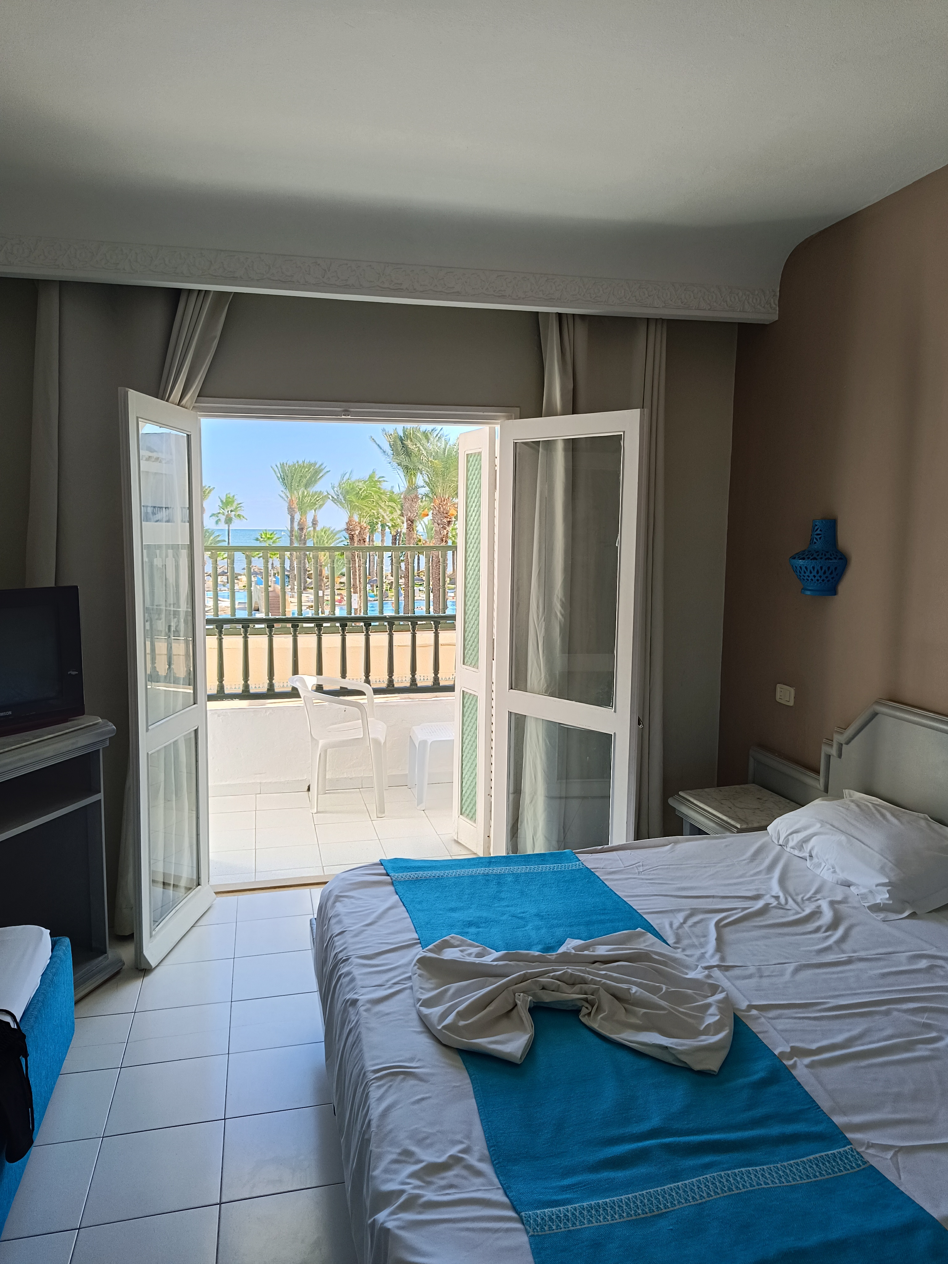Największym atutem tego hotelu było to że mieliśmy widok na basen i na morze .