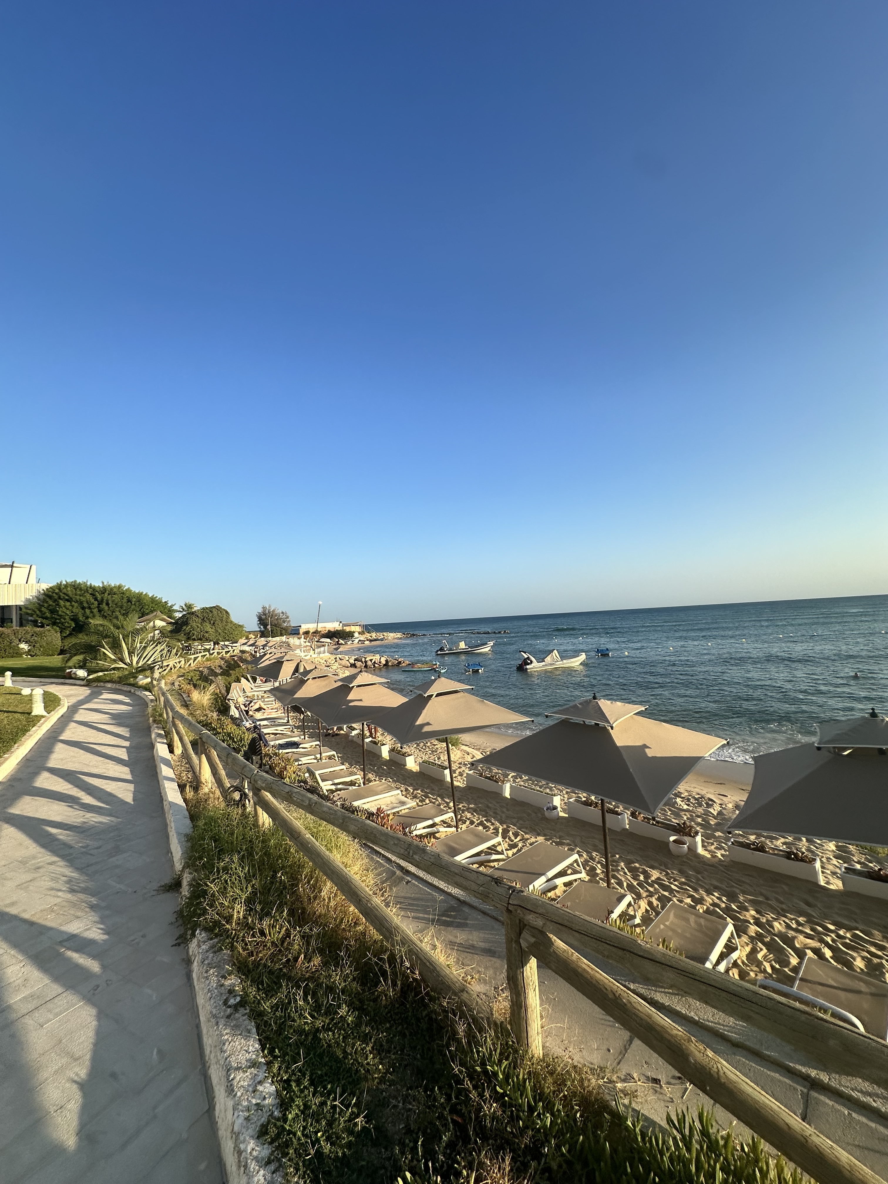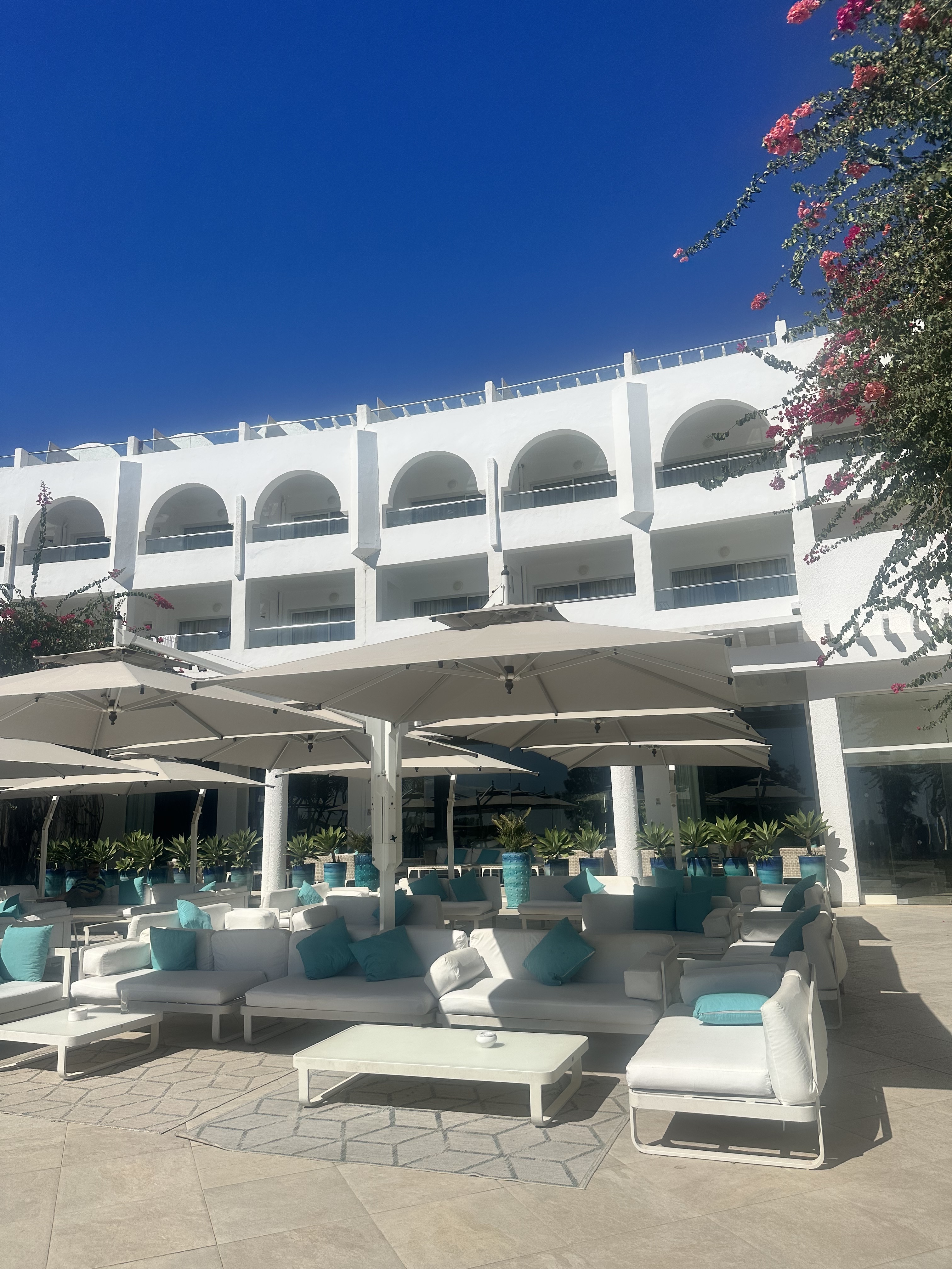 Elegancki hotel z bezpośrednim dostępem do morza i własną plażą, oddalony zaledwie 3km od centrum Hammamet. Stonowane kolory wnętrz, nowoczesne dekoracje i piękne widoki z pokoi na zieleń ogrodu i lazur wody sprawiają że czuje się wyjątkowość tego miejsca. Jeden z tych hoteli w Tunezji, które zapamiętuje się na długo.