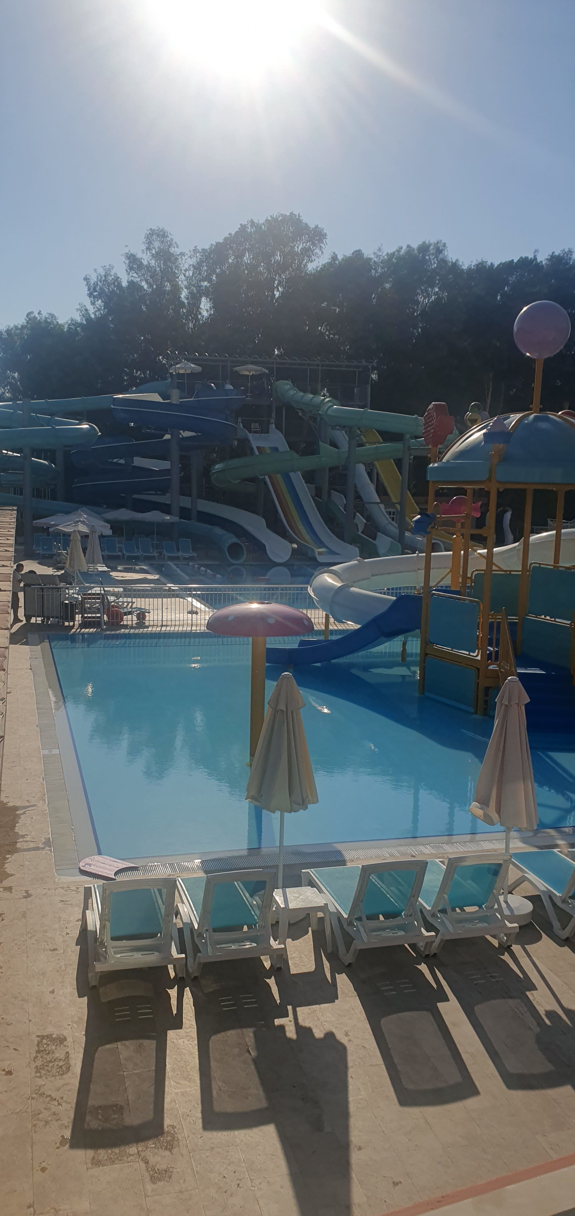 Kilka basenów dzięki czemu każdy wybierze coś najodpowiedniejszego dla siebie Dobre jedzenie Czysto i schludnie Duza ilość kotów- są wszędzie ale kotki są przyjazne