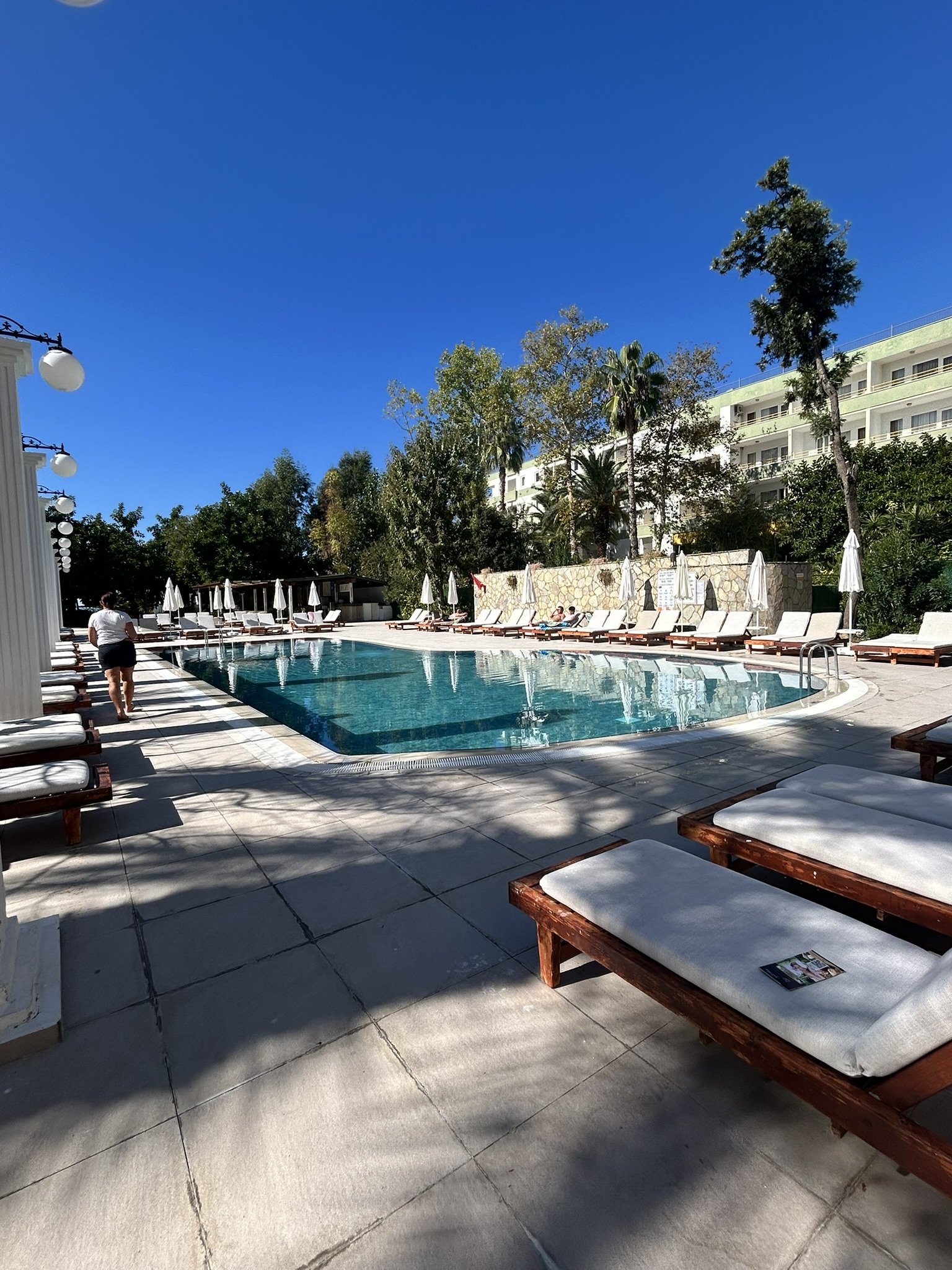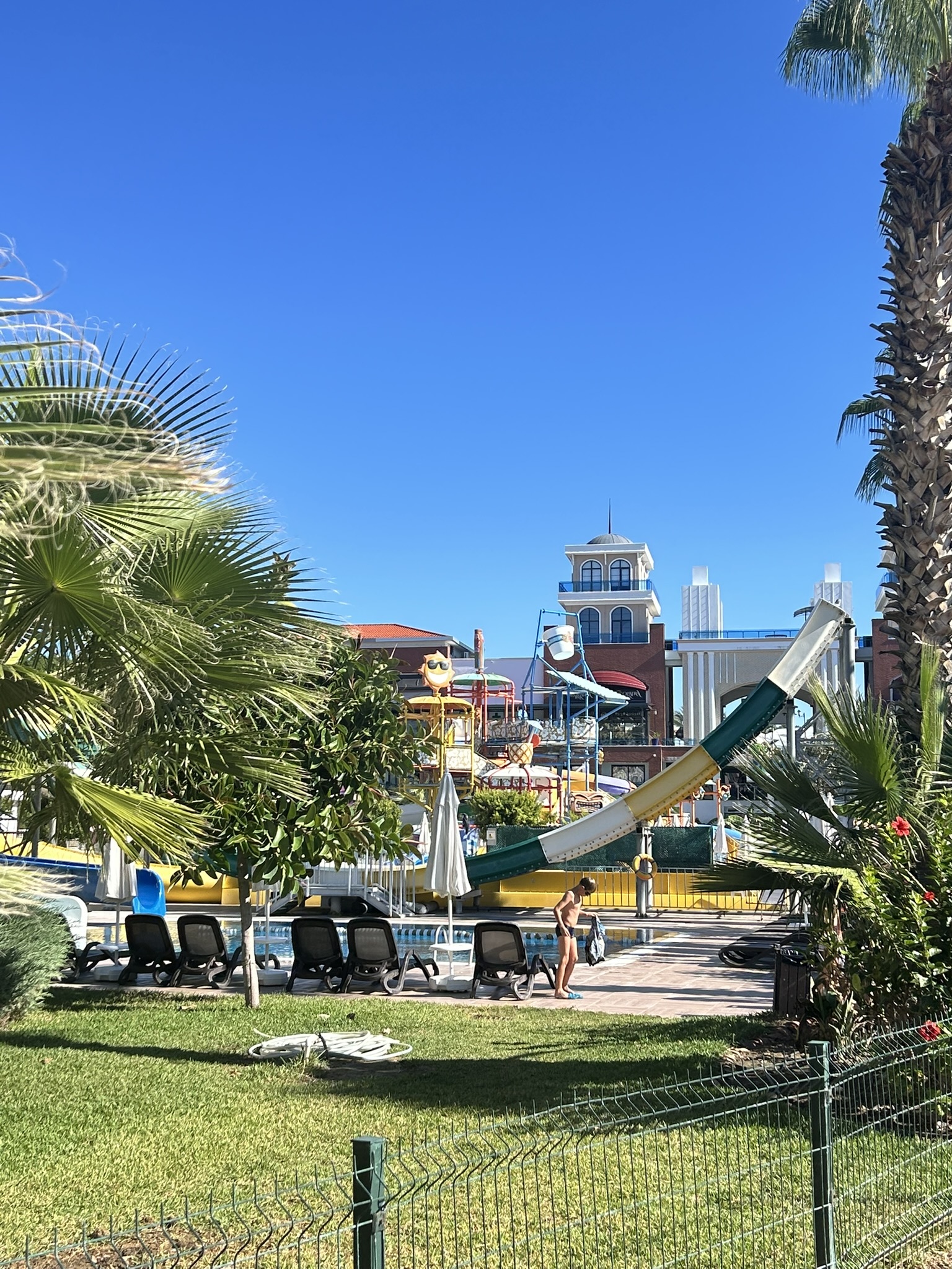 Hotel Club Aqua Plaza 4* to urokliwe miejsce z pięknym, dużym terenem zielonym i cudownym ogrodem, który tworzy przyjemną, wakacyjną atmosferę. Ogromnym atutem jest duży aquapark, idealny dla rodzin i osób lubiących wodne atrakcje. Goście mogą korzystać z basenu z morską wodą tuż przy plaży, gdzie woda jest stale odświeżana, a widok na morze zachwyca. SPA jest czyste, pachnące i oferuje wiele zabiegów, co sprzyja relaksowi. Położenie hotelu również zasługuje na pochwałę – w pobliżu znajduje się wiele outletów i bazarów. Mimo że obiekt ma już swoje lata, nadal ma klimat i zapewnia przyjemny wypoczynek wśród zieleni i słońca.