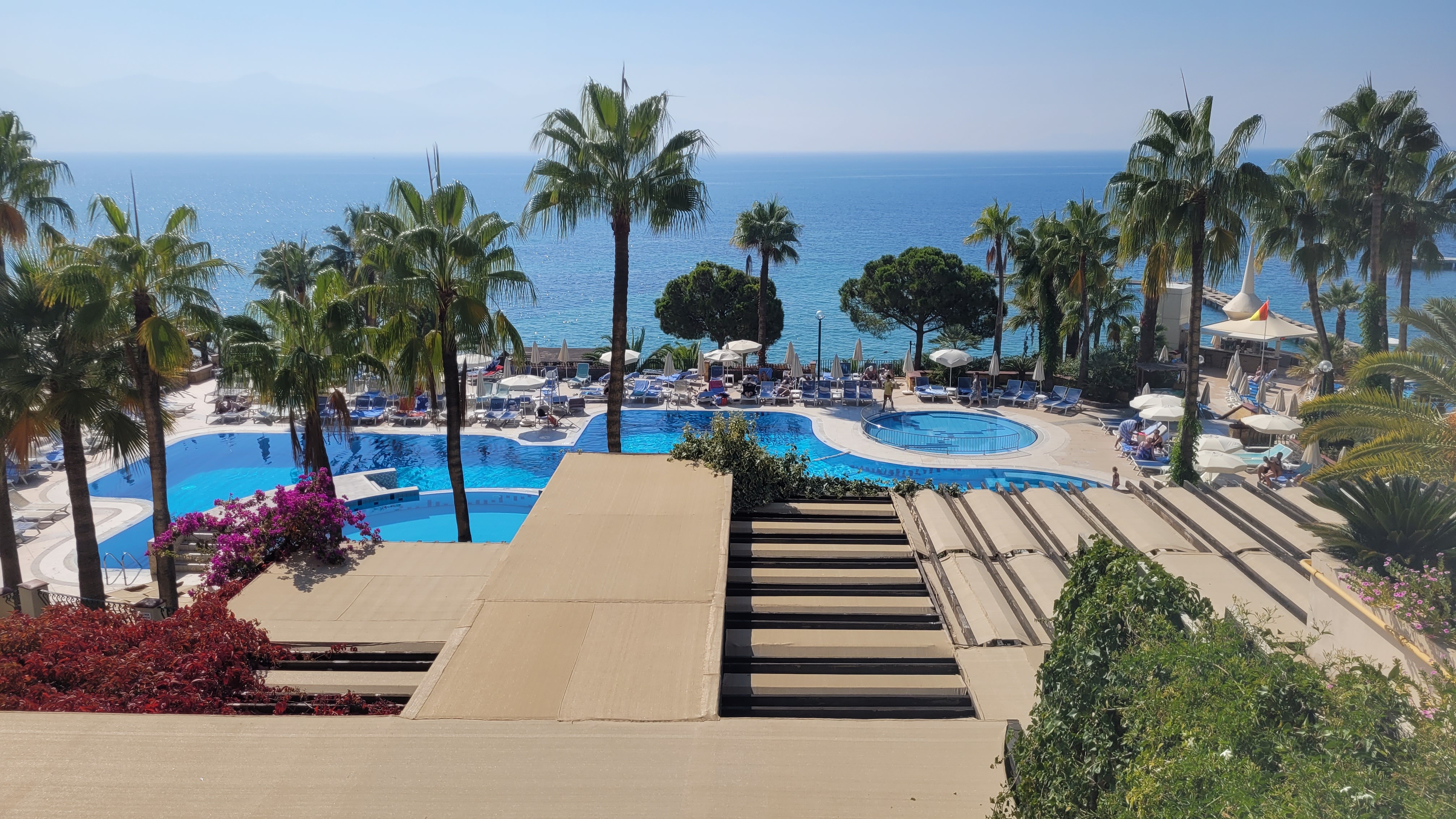 Przy samym morzu, widok na góry, hotel w otoczeniu zieleni, palm. Dla lubiących zakupy blisko bazar a miejskimi busami lub taxi 10 minut do centrum