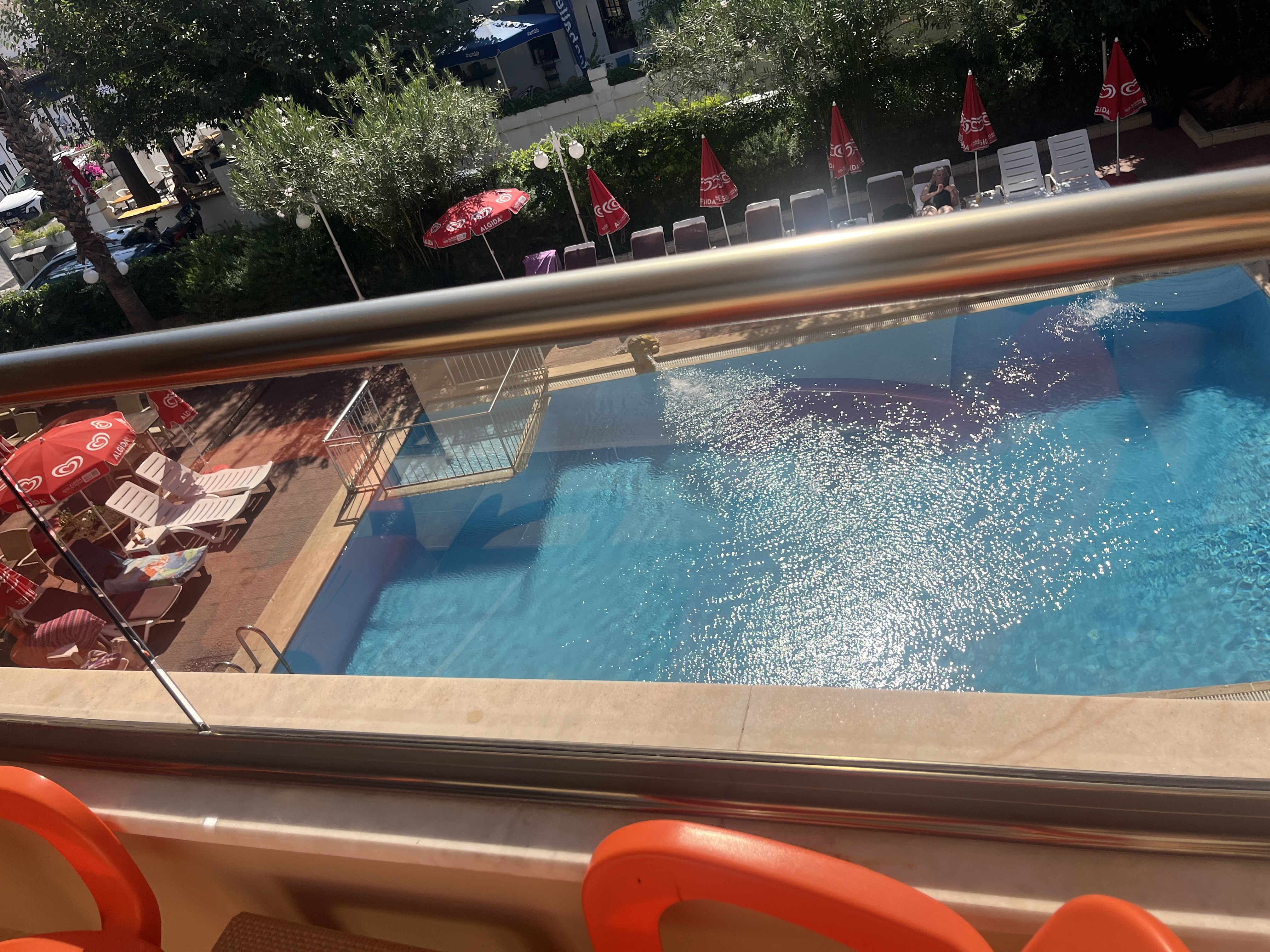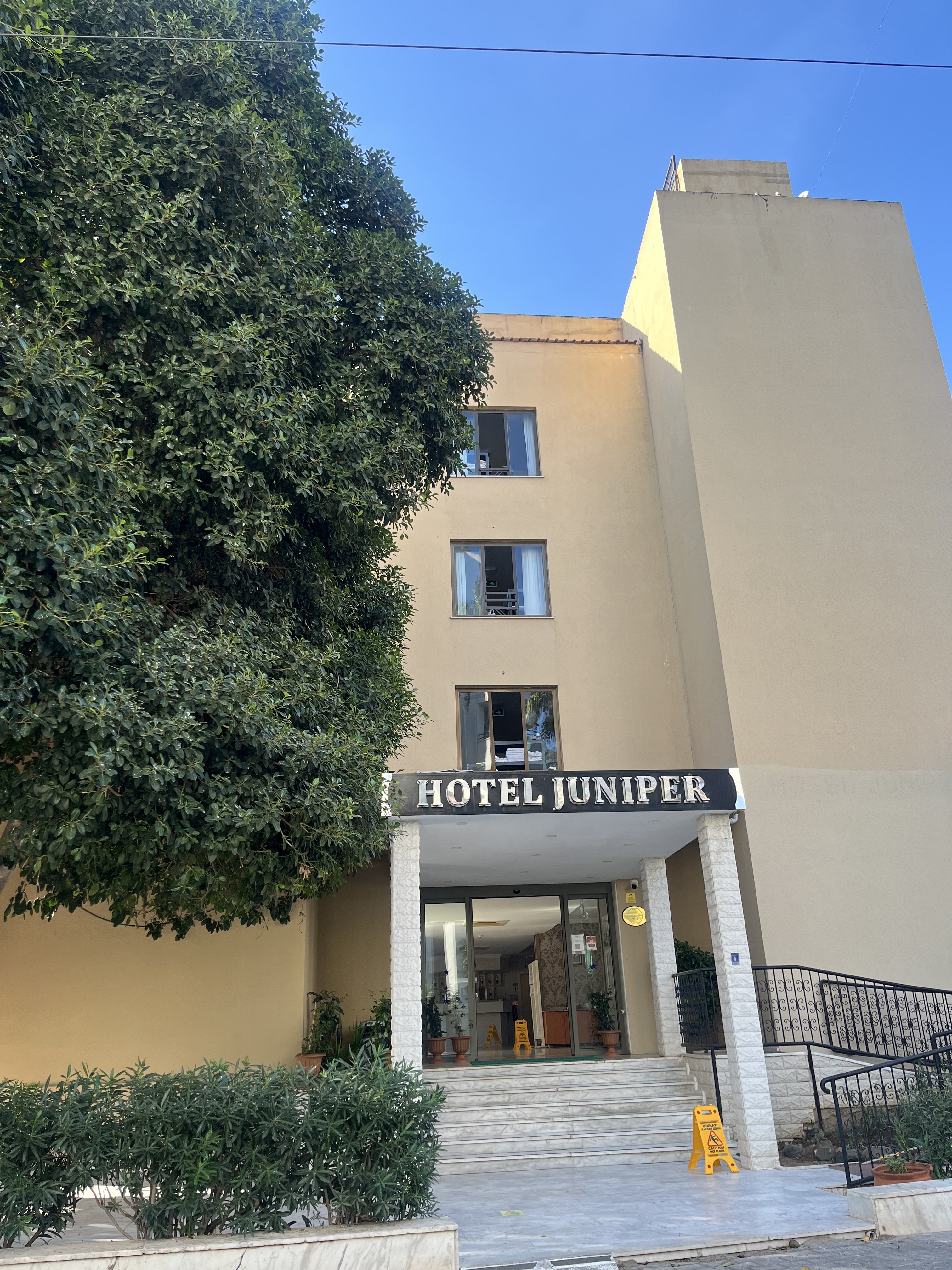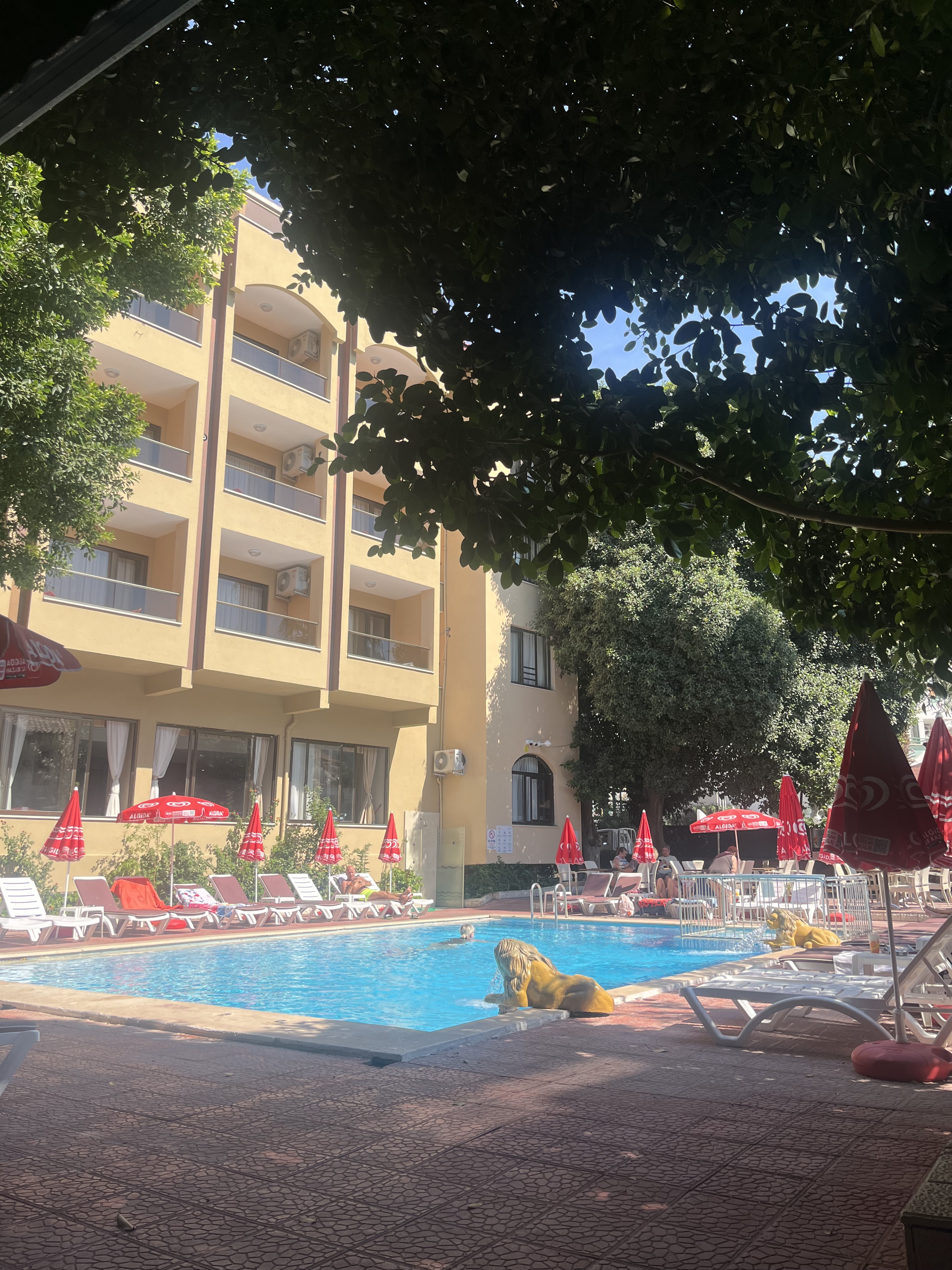 Hotel nieduży skromny ale czysty, bardzo przyjemny, położony w centrum miasteczka, w zaciszu przecznicy głównej ulicy, blisko do komunikacji miejskiej, sklepów, lokali gastronomicznych, do plaży miejskiej 10 min spacerkiem. Przy hotelu zadbany basen zewnętrzny , leżaki parasole stoliczki, bar przy basenie. Oczywiście z początku przydział pokoju w gorszym standardzie ale po niewielkich negocjacjach przeprowadzka do lepszego lokalu 😊
