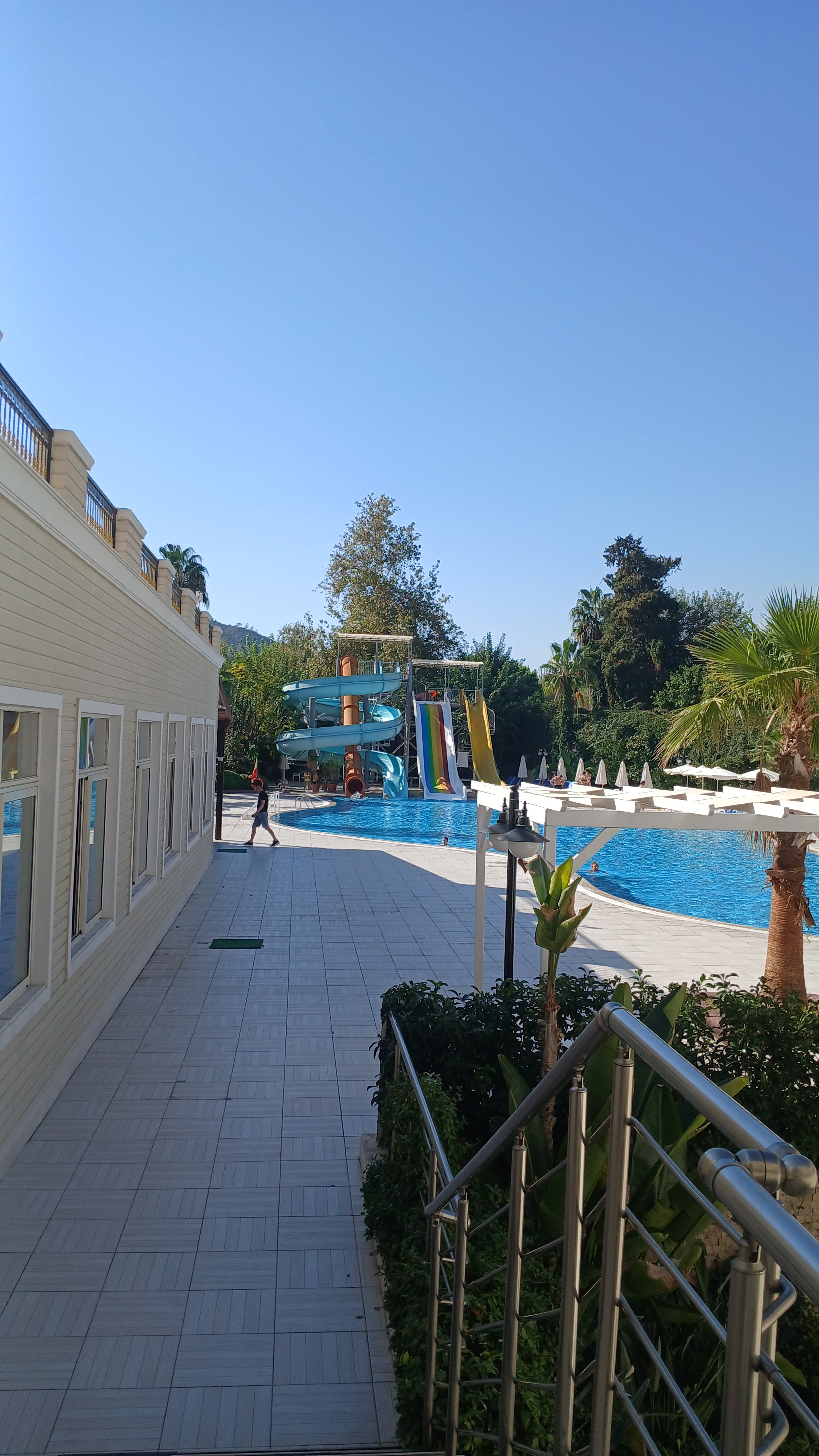 pobyt ok , ale byliśmy w lepszym w Turcji , personel pracowity ale bez uśmiechu , pokój ok oprócz łazienki kąpiel od prysznicem odraza fugi brudne , odpadające prysznic widać znak czas , muzyka powinna być bardziej oryginalna europejska ale poza rosyjska w nadmiernej ilości spoko . Jeśli ktoś jest tolerancyjny nie ma wymagań książęcych jest na prawdę spoko . Teren naprawdę miły ładny przyjemny .Miło spędziliśmy czas . Jedź i oceń sam Miłego pobytu .
