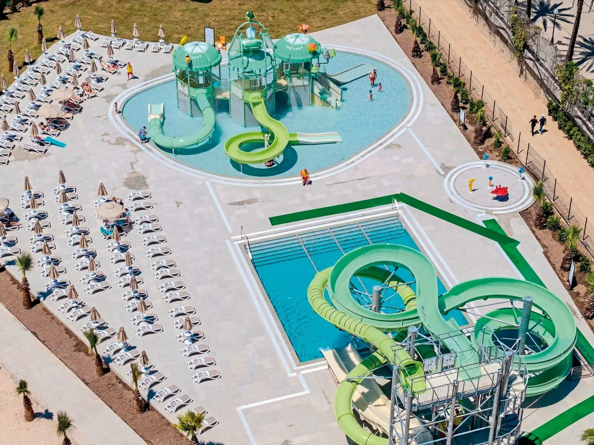 Na terenie hotelu znajdują się baseny zewnętrzne z aquaparkiem i zjeżdżalniami wodnymi, a także 2  baseny dla dzieci.