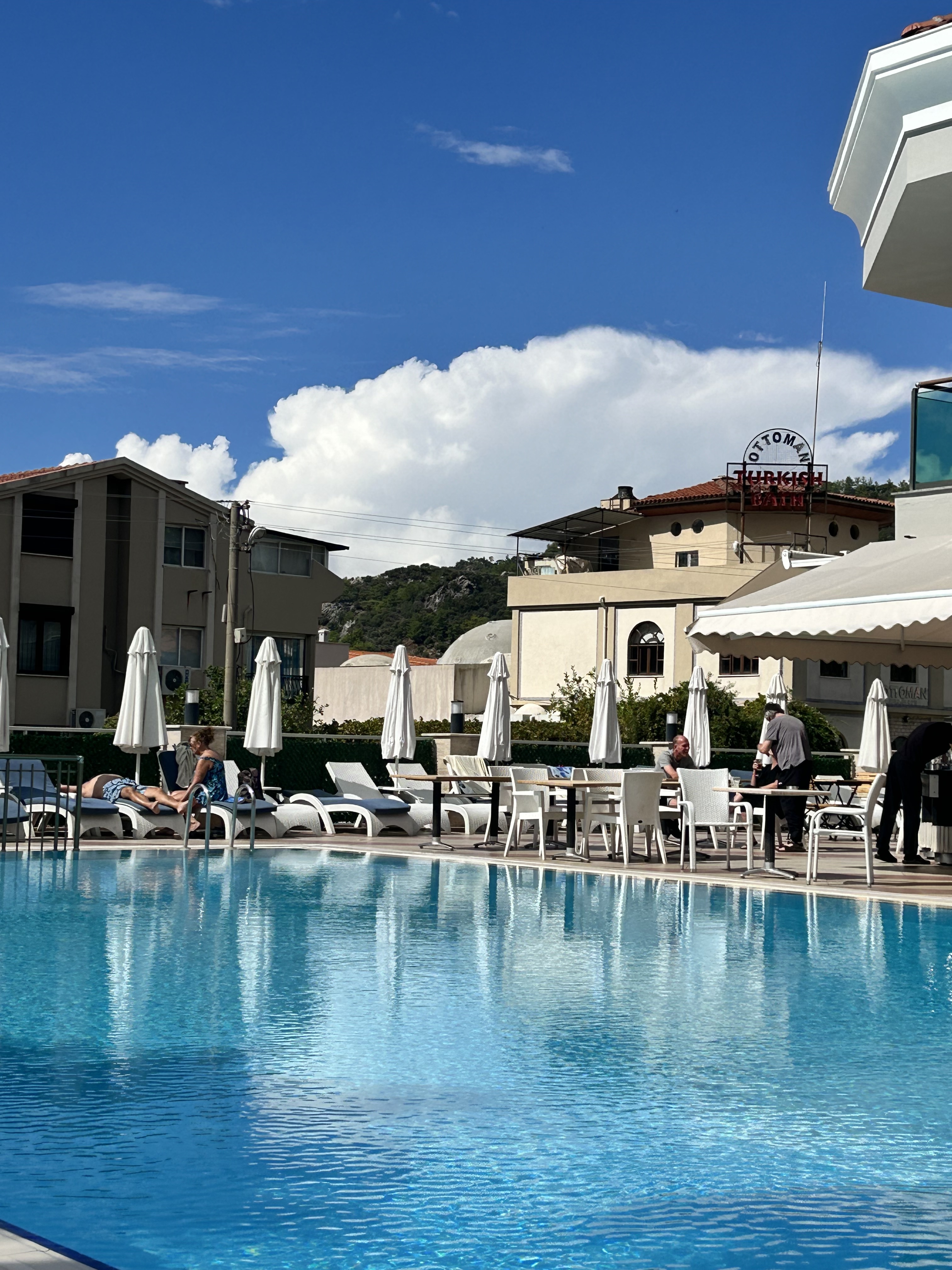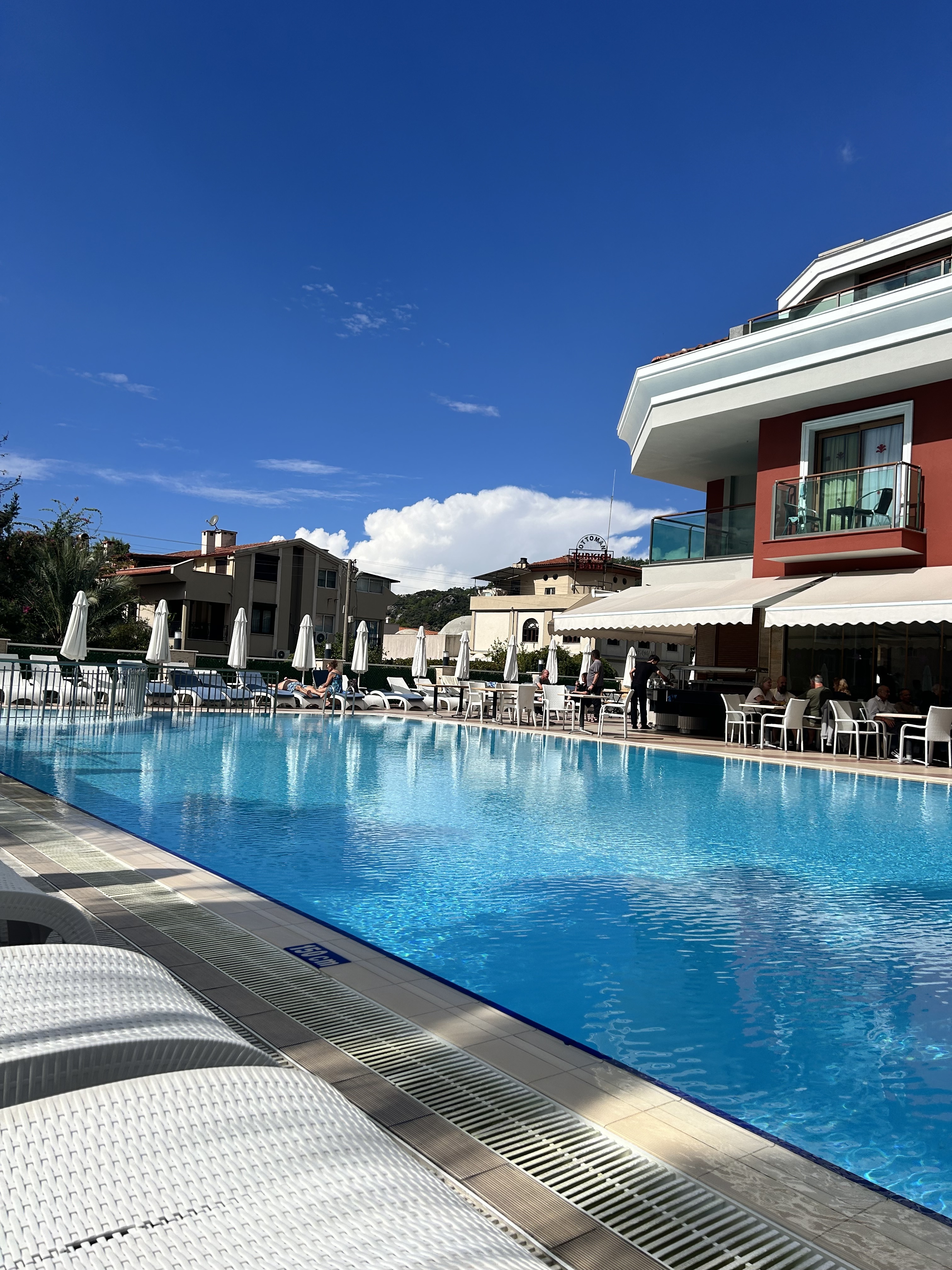 Niewielki kameralny hotel, położony ok 400m od ścisłego centrum, bazaru, portu. Ok 600 m od publicznej plaży. Super lokalizacja 😍. Hotel raczej nastawiony na spokojny wypoczynek - zapewnia przytulny kącik odpowiedni do wypoczynku, ale wieczorami odbywały się również animacje 😍. Pokoje niewielkie ale czyste. Smaczne jedzonko 🥘 🥣 . polecam ! 😊💛✨