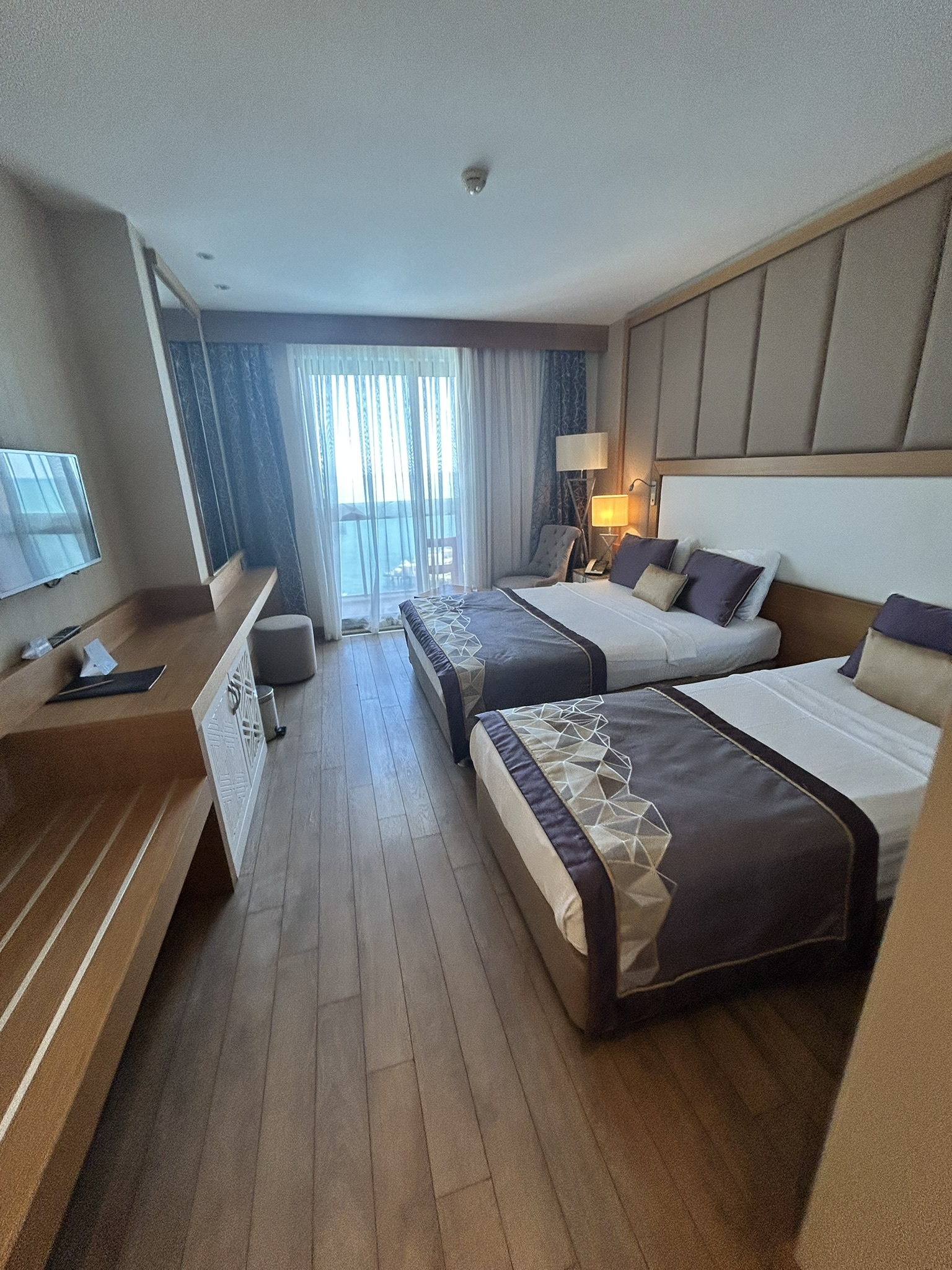 Hotel Mary Hotel Alanya to elegancki obiekt z bardzo ładnym i przestronnym lobby, które robi wrażenie luksusem i komfortem. Pokoje są czyściutkie, a widoki z pokoi typu sea view są naprawdę piękne i relaksujące. Pokoje rodzinne również przestronne, wnętrza dla 4 osób, z trzema wygodnymi łóżkami. Hotel oferuje duży basen zewnętrzny oraz czysty basen kryty, w którym woda nie ma nieprzyjemnego zapachu. Plaża jest niewielka, ale posiada wiele pomostów z leżakami, zapewniających wygodne miejsce do opalania. Obiekt wyróżnia się eleganckim, zadbanym stylem i komfortem, który sprzyja wypoczynkowi. To dobre miejsce dla osób szukających czystości, wygody i atrakcyjnych widoków na morze.